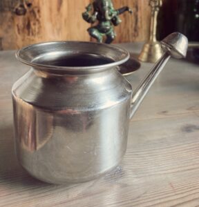 Jala neti est une technique de yoga, qui permet de rincer et nettoyer les cavités nasales à l’aide d’une cruche spéciale (Neti) remplie d’eau tiède salée (+quelques gouttes d’huile de sésame).